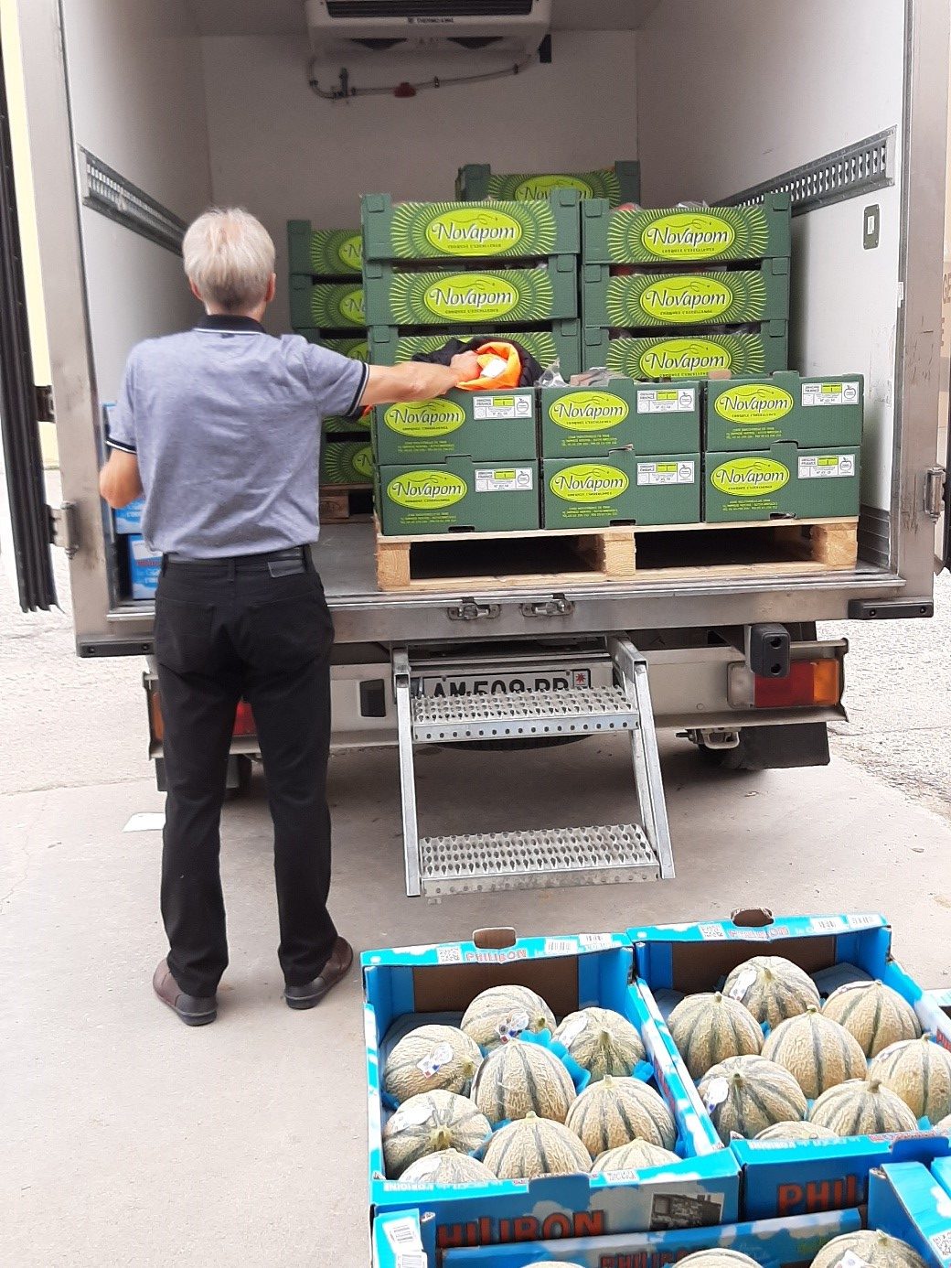 Ce fut également l’occasion de remercier directement des agriculteurs-donateurs : Damien Garrigues, producteur de pommes et adhérent du groupe Novapom, qui accueillait les participants et a donné 360 kg de pommes ; Laurent Maldès, qui représente Blue Whale, donateur très régulier, et qui a donné 39,4 tonnes de pommes et Vincent Quintard, représentant l’entreprise Boyer, fidèle également à SOLAAL, et qui a apporté 500 kg de melons et de raisins. Un coup de chapeau également à l’association les Belles Gamelles, qui produit et distribue des repas solidaires, et qui a cuisiné des invendus des acteurs du MIN de Toulouse, pour l’occasion !