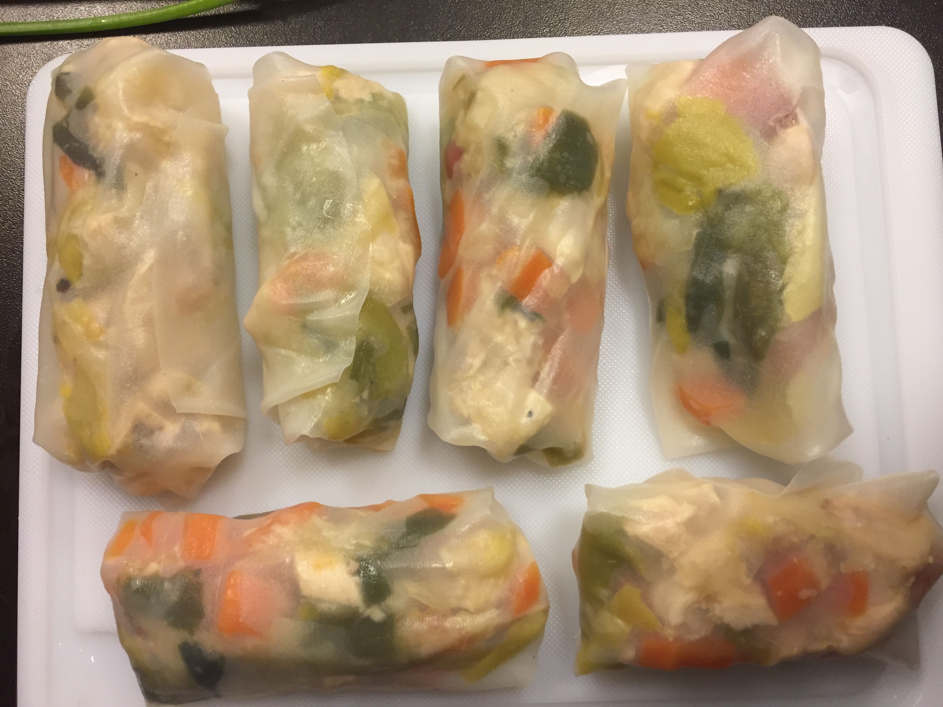 - Entrée avec les restes du chapon : Rouleau « détox » dans feuille de riz avec chapon, radis noir (cru et râpé), carotte et poireau (cuits) et jus de mâche mixée avec huile d’olive.