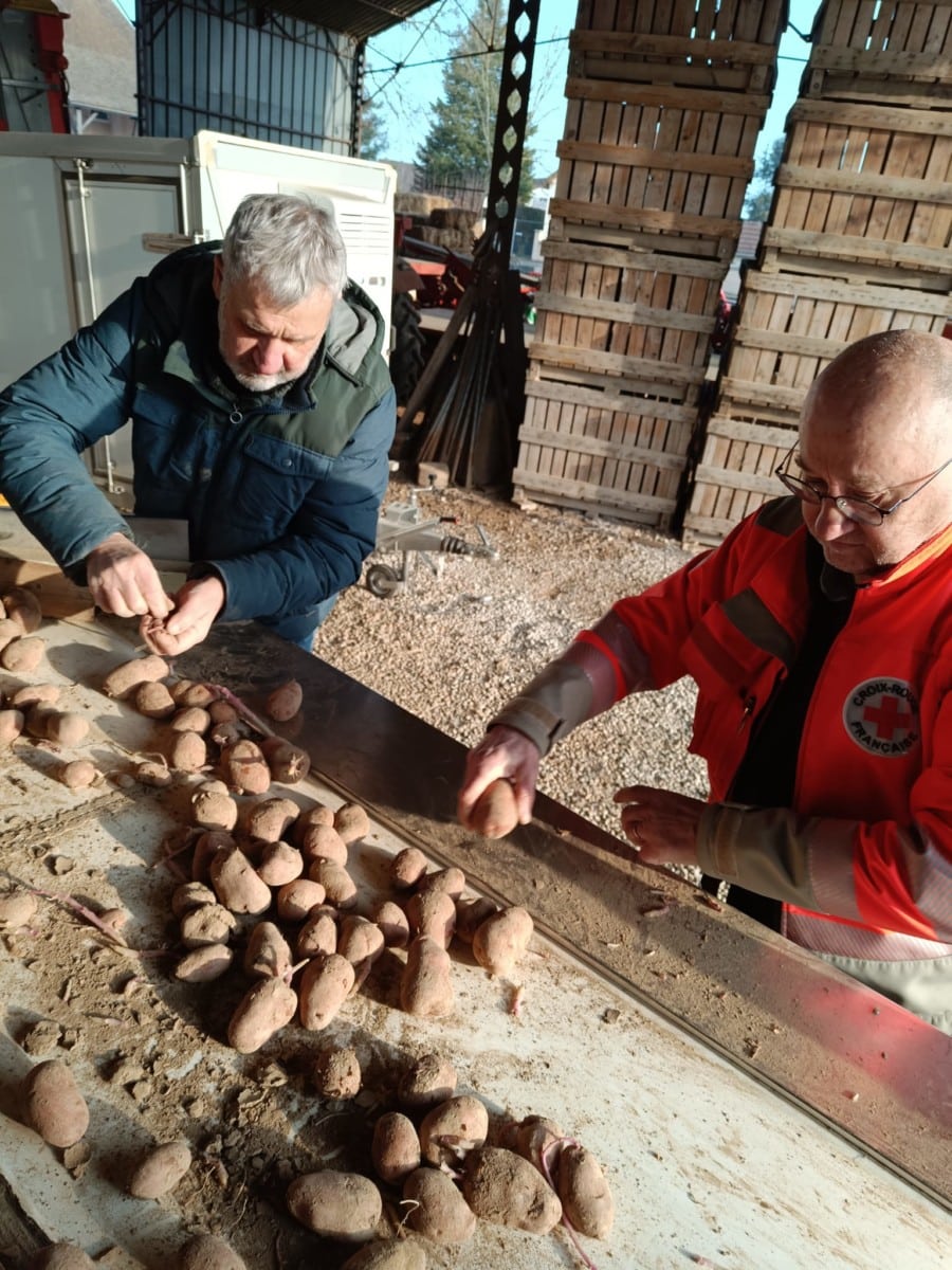 En février, un bel élan de solidarité s’est déroulé au GAEC du Moulin Brûlé en Saône et Loire où trois bénévoles de la Croix-Rouge du Jura se sont retroussés les manches pour une action d’aide alimentaire concrète : le reconditionnement de deux tonnes de pommes de terre destinées aux personnes accueillies.