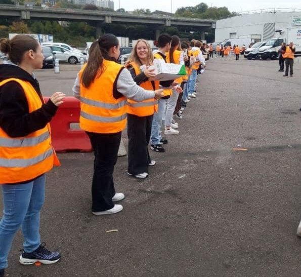 En fin de matinée, l’ensemble des participants a pris part à une chaîne du don symbolique, illustrant le passage concret des produits agricoles depuis les grossistes alimentaires jusqu’aux associations d’aide alimentaire. Plus de 400 kg de produits ont été donnés par l’entreprise SRPM au chantier d’insertion ANDES.