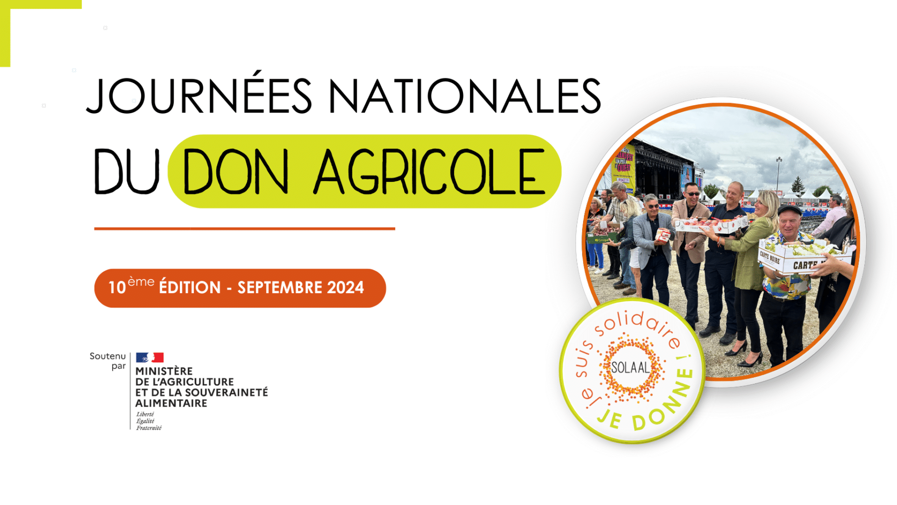 Evènement phare de l’association SOLAAL, créées en 2015 à l’initiative de la présidente Angélique Delahaye, les Journées nationales du don agricole (JNDA) mettent en avant de la solidarité des acteurs du monde agricole et agroalimentaire. Soutenues par le Ministère de l’Agriculture et de la Souveraineté Alimentaire, les JNDA ont lieu chaque année depuis 2015 durant le mois de septembre. Pour SOLAAL, le mois de septembre est devenu celui de la solidarité agricole.