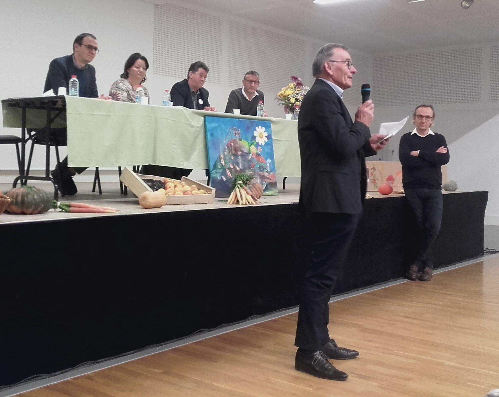 L’association Noyal Solidarités a choisi le thème du gaspillage alimentaire pour une semaine de sensibilisation du grand public du 12 au 16 novembre 2019 à Noyal-sur-Vilaine (35), près de Rennes en Bretagne. Christian Mochet, éleveur laitier et habitant de Noyal, a suggéré d’inviter un représentant de SOLAAL, afin d’illustrer la contribution des agriculteurs à cette lutte contre le gaspillage alimentaire.