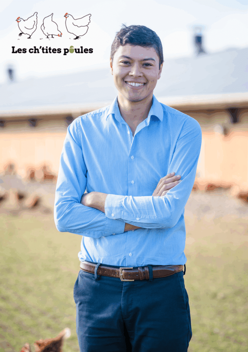 Je suis Ludovic, j’ai 27 ans. J’ai commencé à travailler en tant qu’agriculteur en 2021, quand j’avais 23 ans. Dans le cadre de mon projet d’installation j’ai lancé la construction d’un poulailler de 7 000 poules élevées en Agriculture biologique. J’avais à l’époque un contrat avec un conditionneur national d’œufs. Cependant, j’ai très vite, souhaité assurer moi-même la vente de ma production sous ma marque « Les Ch’tites poules ».