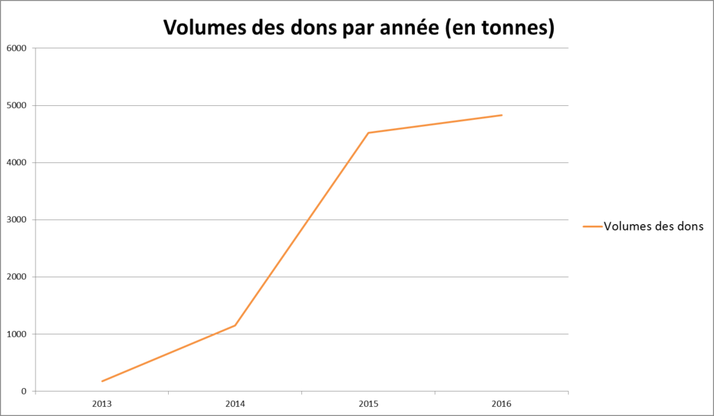 Les produits donnés dans ce cadre, ainsi que ceux donnés par des donateurs réguliers ont permis d’apporter plus de 24 nouveaux produits entre 2015 et 2016, créant ainsi une diversification supplémentaire dans l’alimentation des bénéficiaires.