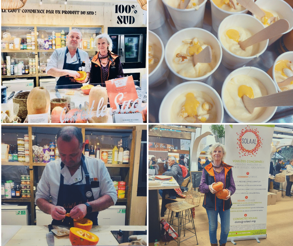 Le jeudi 2 mars, lors du Salon international de l’agriculture (SIA), un atelier culinaire en partenariat avec la Chambre d’agriculture PACA avait lieu sur le stand de la région. Cet atelier culinaire antigaspi a permis de mettre en avant un légume de saison et de cuisiner un potiron, dans sa totalité. En effet, les conseillers culinaires de la région Sud ont réalisé une mousse de potiron accompagnée de ses graines grillées. Ces potirons ont été offerts par le MIN Châteaurenard Provence.
